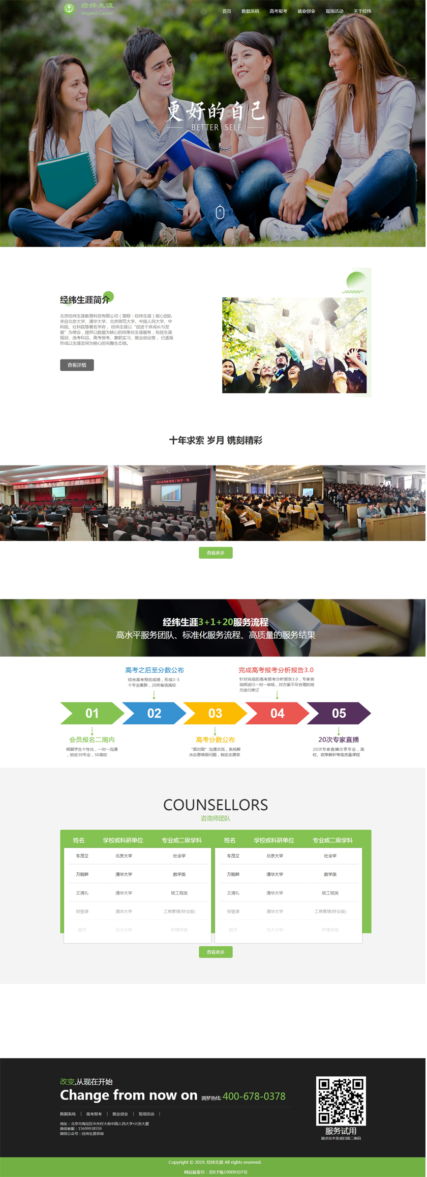 Project Description 北京经纬生涯教育科技有限公司(简称:经纬生涯)核心团队来自北京大学、清华大学、北京师范大学、中国人民大学、中科院、社科院等著名学府, 经纬生涯以“促进个体成长与发展”为使命,提供以数据为核心的结果化生涯服务,包括生涯规划、选考科目、高考报考、兼职实习、就业创业等, 已逐渐形成以生涯咨询为核心的完整生态链。 Official website address 榆林http://www.jingweishengya.com/ I want to share