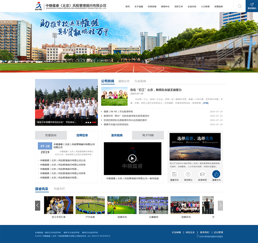 Project Description 中精蕴睿(北京)风险管理顾问有限公司2013年,现有教职工及各科目教育专家80多人,致力于为各中小培训学校(机构) 提供教育相关政策咨询与指引、法律服务、人才引进与培养、师资队伍建设与培训、教学教研与学科创新、市场营销企划、文化 理念塑造与品牌输出的专业化教育管理全方位的综合服务。 Official website address 榆林http://in-re.com/ I want to share